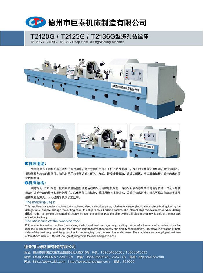 3) 根據(jù)用戶的需求,深孔鉆鏜床可帶鉆(鏜)桿箱,工件可低速旋轉(zhuǎn),刀具高速旋轉(zhuǎn),提高加工效率。
